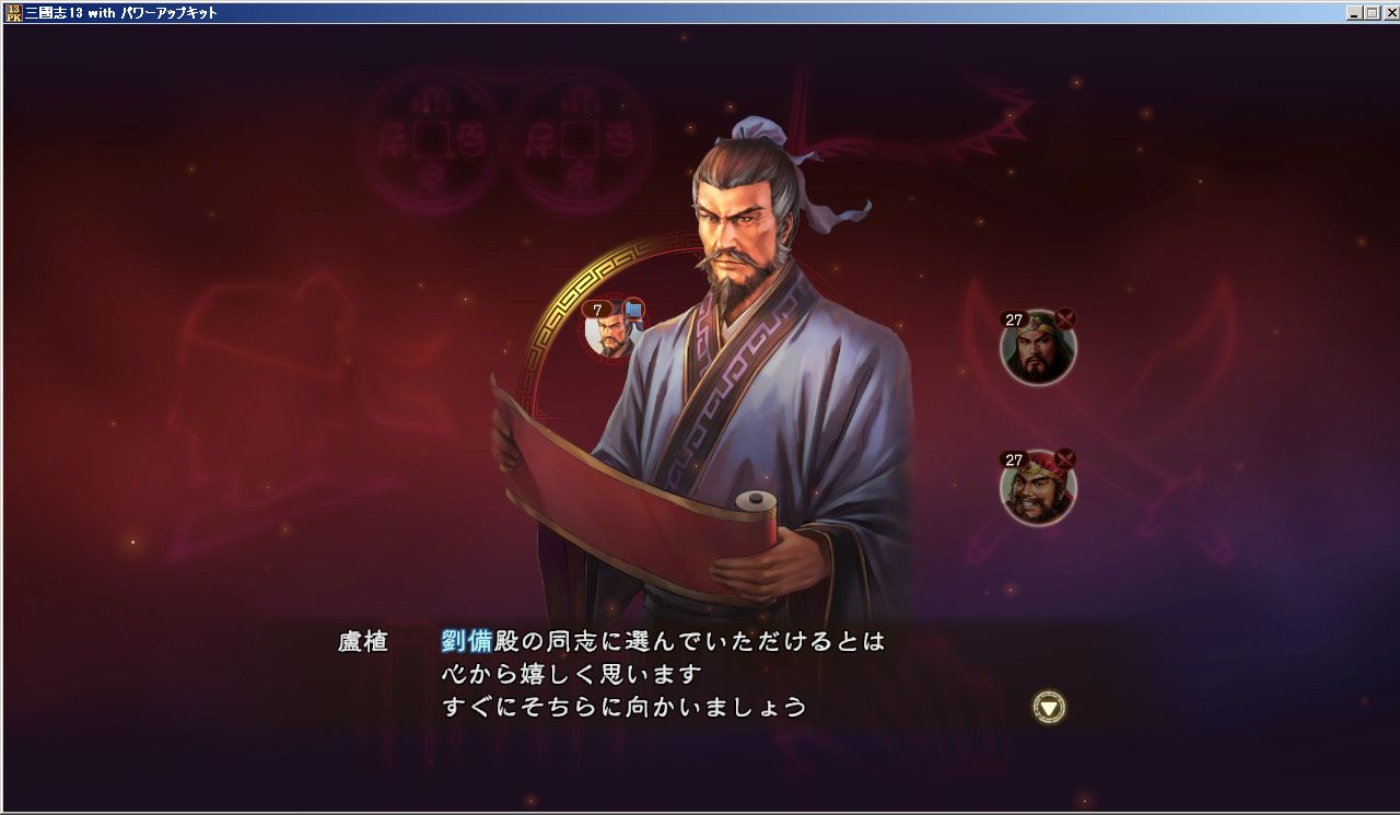 やっぱ、せっかくのPKなんだから、在野プレイを堪能しなきゃ嘘だよね~。しかも悪の道を究めてみたかったりする。で、天邪鬼的な発想で選び出したのが劉備。