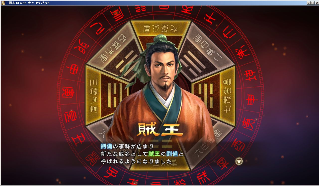 で、順調に悪をひた走り、とうとう『賊王』になっちゃいました。いやあ、いろいろ悪いことしまくったもんなあ。因縁つけて喧嘩を売り、カツアゲ、ゆすり・・それを劉備がやるんだから、面白い