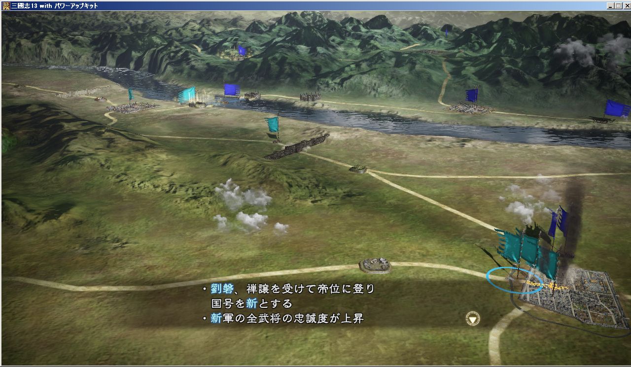 孫策軍を滅ぼし、劉璋軍を滅ぼしている間に、北では曹操軍が馬騰軍を滅ぼし、袁紹を追い詰めた。時が移ろい、曹操、曹丕が死に、曹家は曹霖が君主となり、袁家では袁紹、袁尚が死に、袁煕が君主となった。当家でも劉表が死に、劉琮が君主となった。