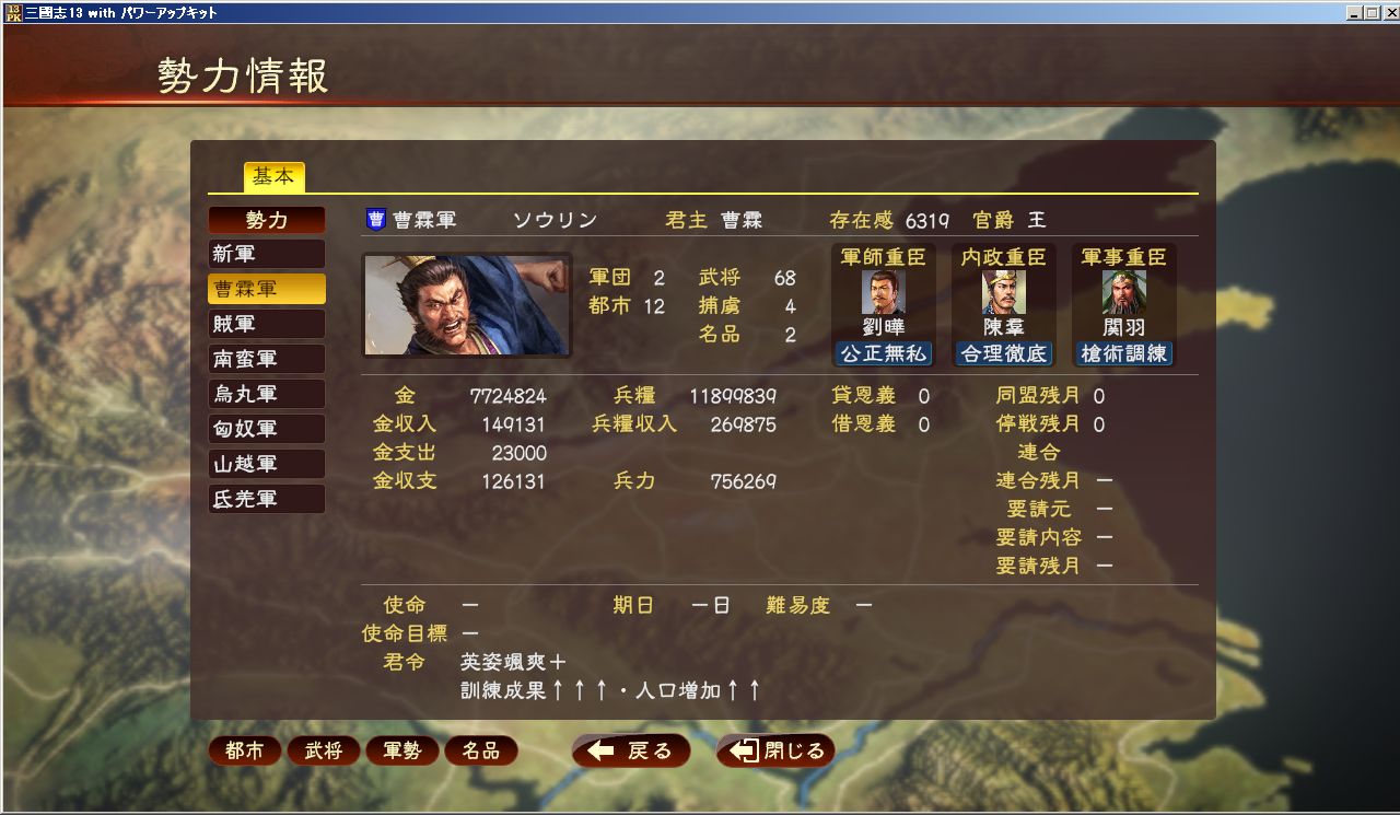 ただ・・とにかく曹家が強いんよ。曹霖自ら軍を率いて来た時なんか、彼の部隊だけで6万とかいるからね。しかも配下に関羽とか超雲とか馬超とかいるし。極悪っすよemoji