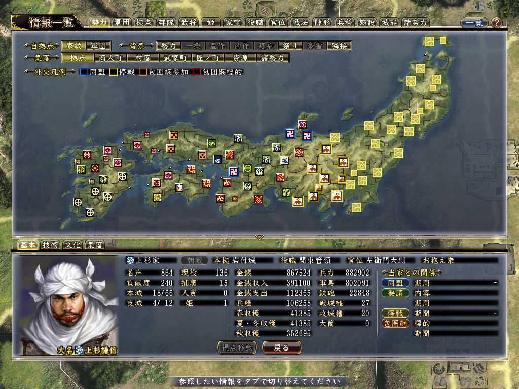 大義を得て、名実ともに充実する上杉家を恐れた村上義清と武田晴信と今川義元が手を組んで大連合を結成した。ちなみにこの頃の上杉家は東北を全て手中におさめ、関東攻略に乗り出している。