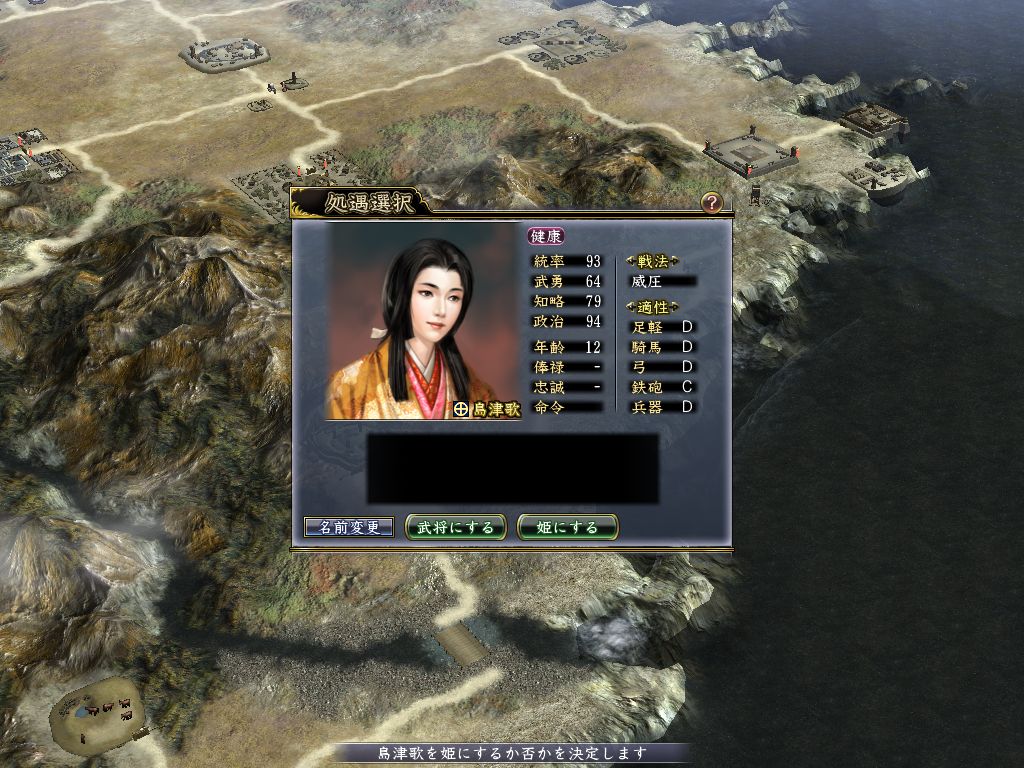 娘の統率と政治が90越えで半端ねえ!・・・迷わず姫武将にすることにした。