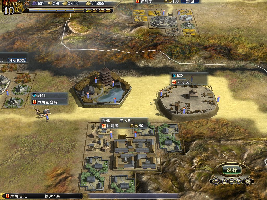 十河城の西には当主・河野通直自ら率いる河野勢が砦の攻略にかかっているが、お世辞にも戦上手とは言えず、細川家の兵と一戦交える前から、行軍中に随分と兵を減らしているようである。兵力は一万足らずであり、砦を落とすまでにまださらに兵を消耗することだろう。