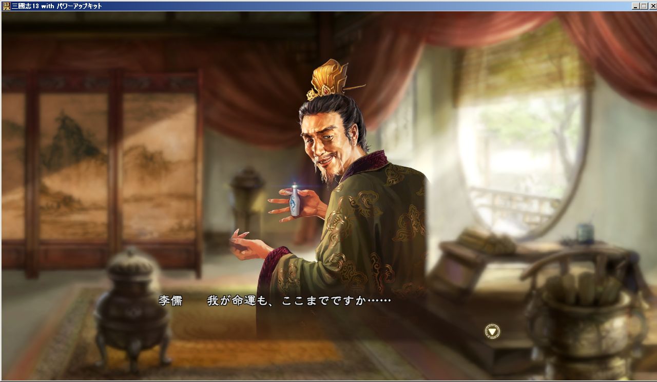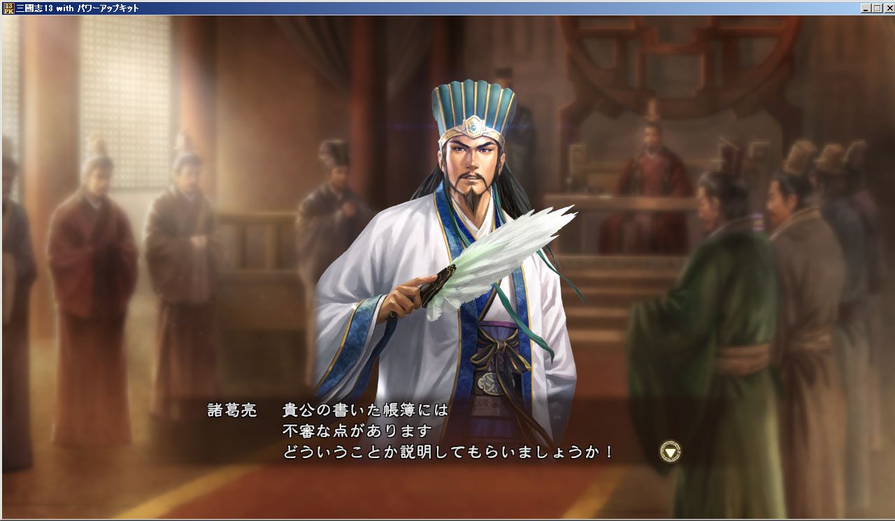 こりゃあ、いよいよ本腰入れて弱体化させるべえ。と、『国庫掌握』で金額MAXの横領かましてたら、とーとー出てきちゃったよ。孔明が。。