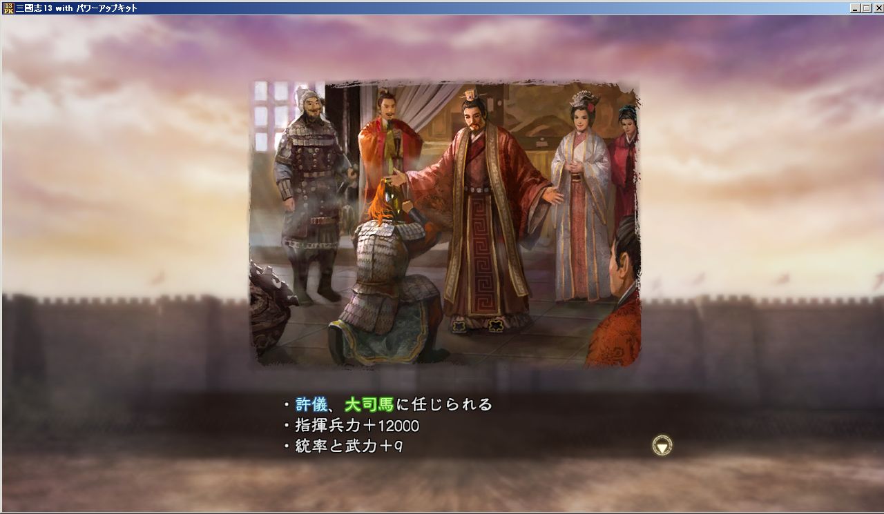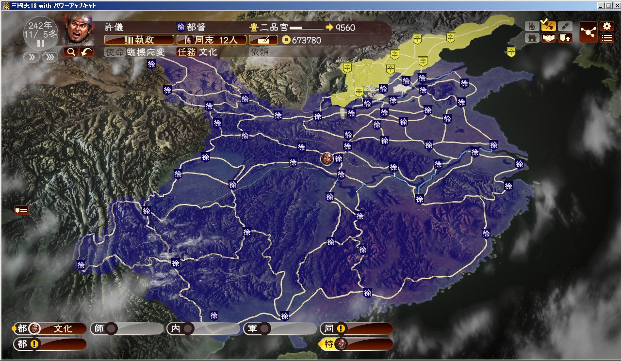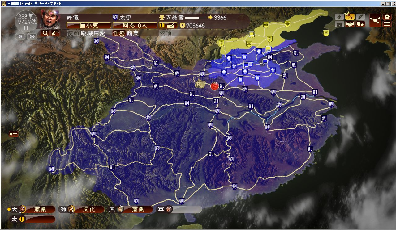 でも許儀っちは、父親以上の脳筋なんで、官吏プレイは苦労すっかな・・・また振り出しに戻るか~なんて、一抹の不安もあったけど・・。