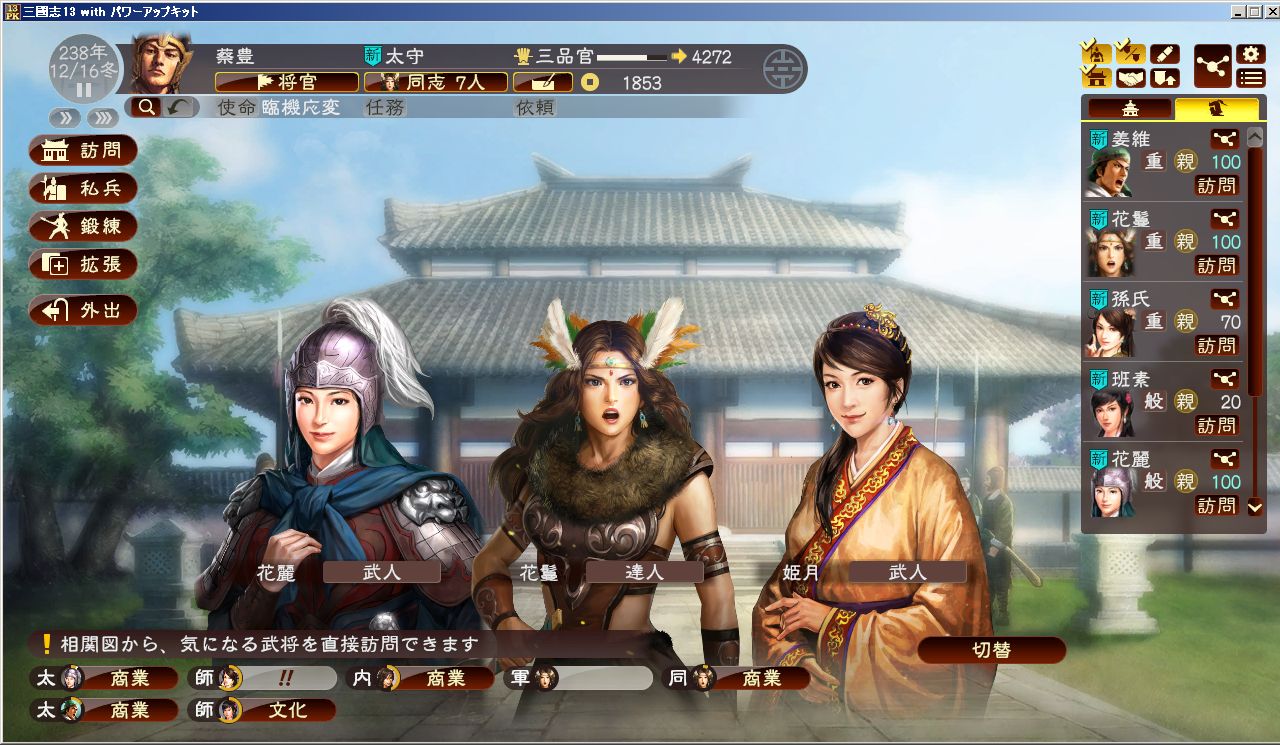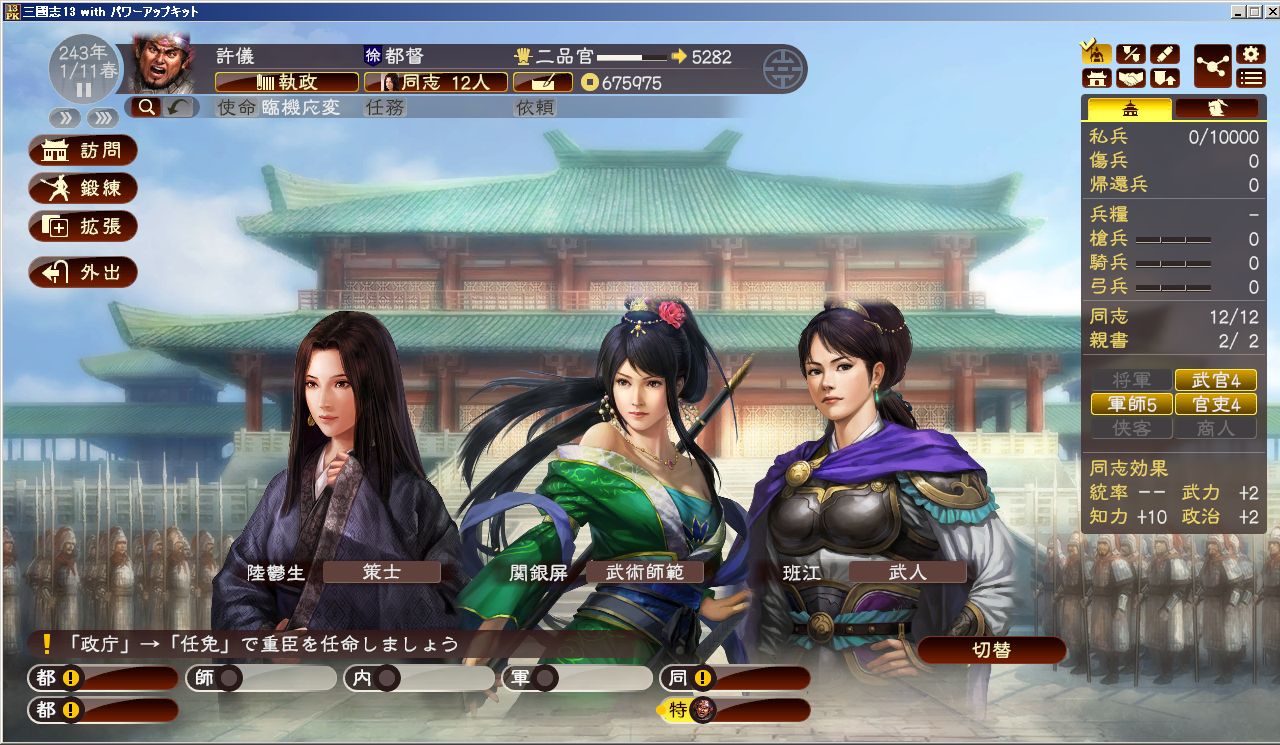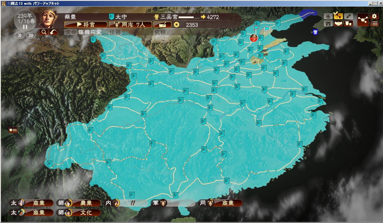 絆武将いっぱいいたし、中には敵君主すらいたけど、一応初志貫徹、官吏プレイをひた走るということで。。