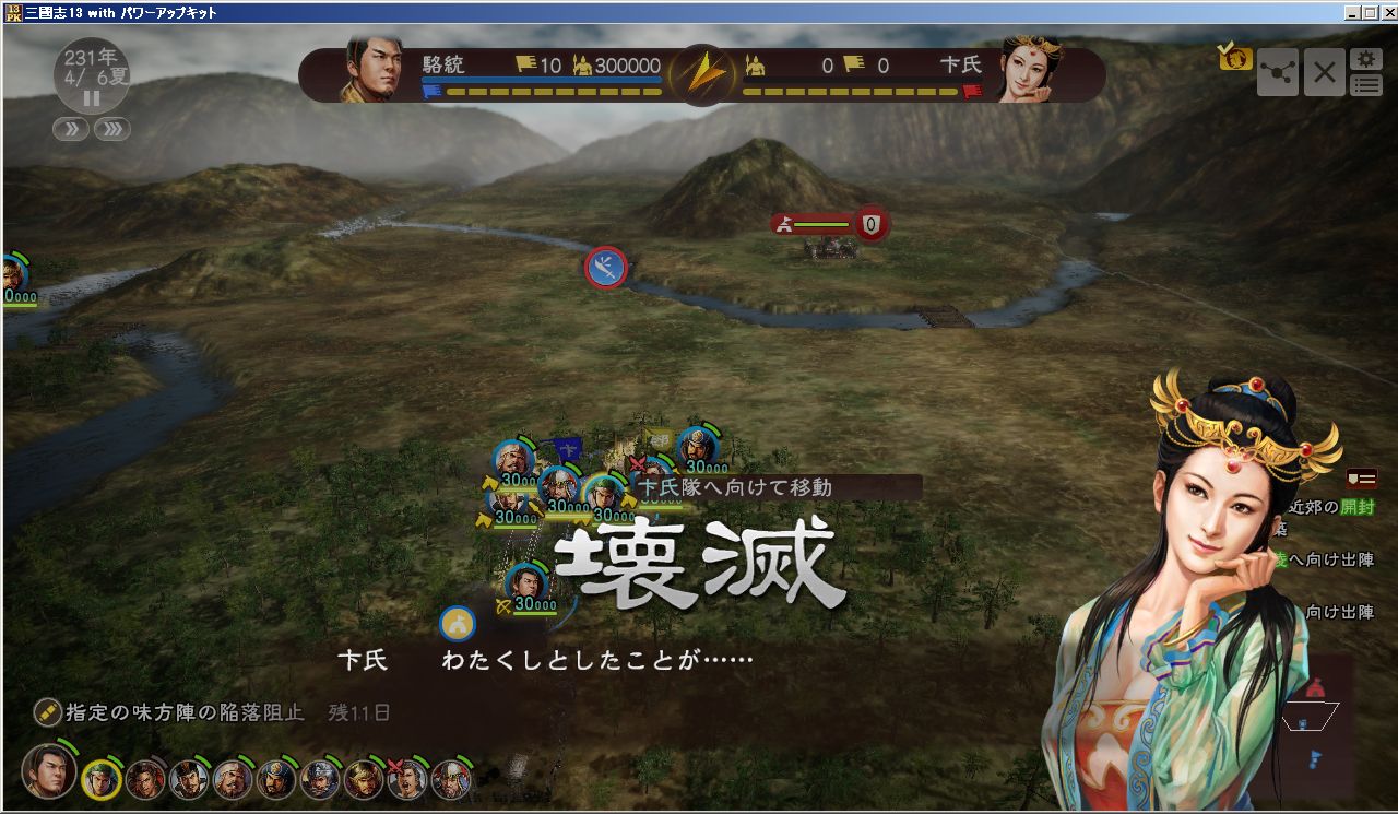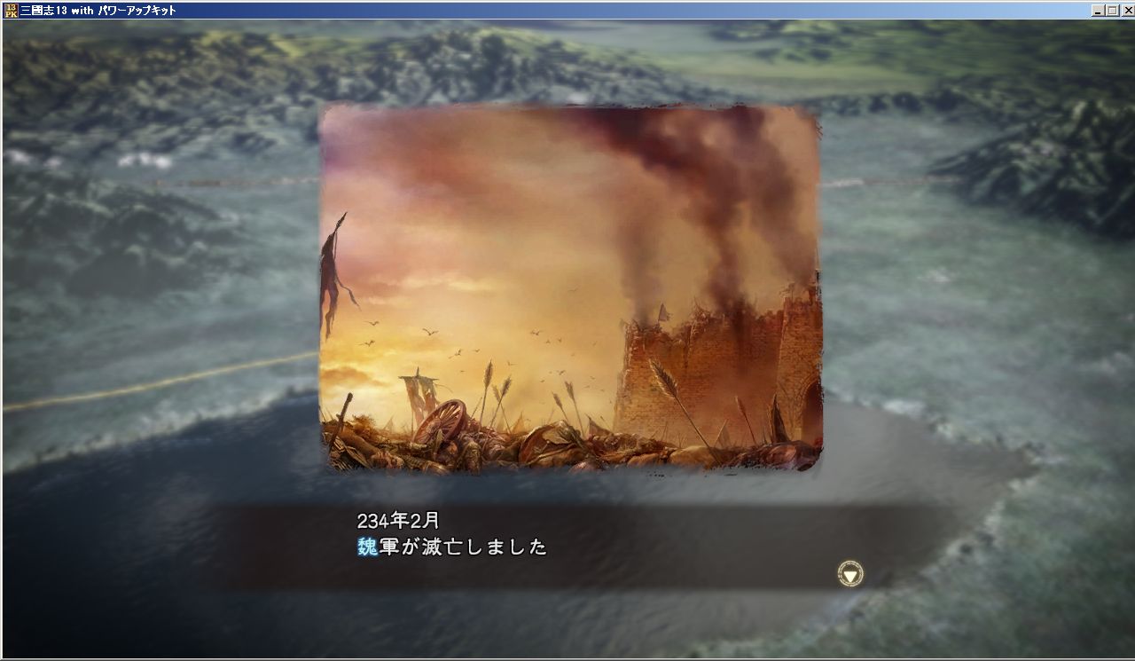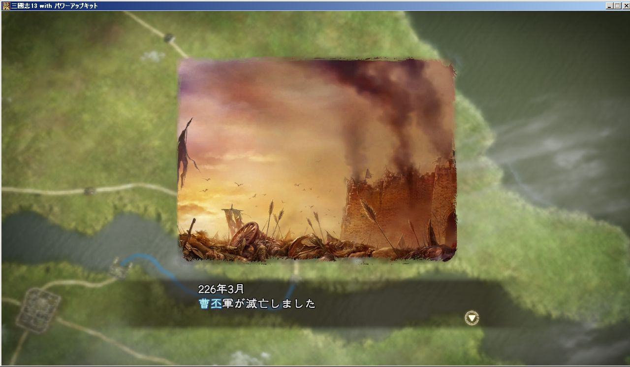 ついにラストの広陵を陥落させ、曹丕軍は滅亡。曹丕軍の多くの武将を取りこみ、あ、いけると安堵。