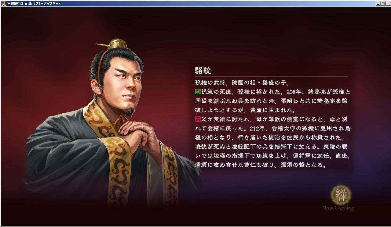 主人公は駱統。呉の武将らしいけど、元々三國志に明るい方じゃないので、知らない。若いという理由で選んだ