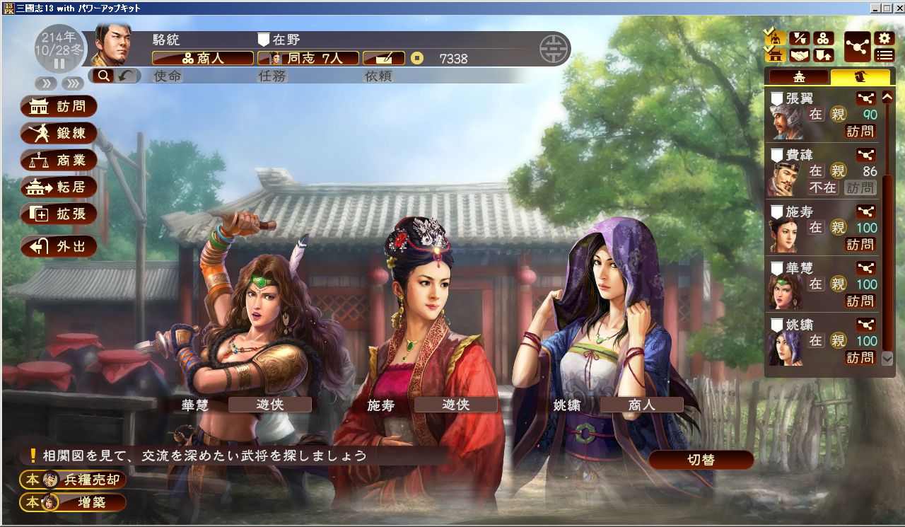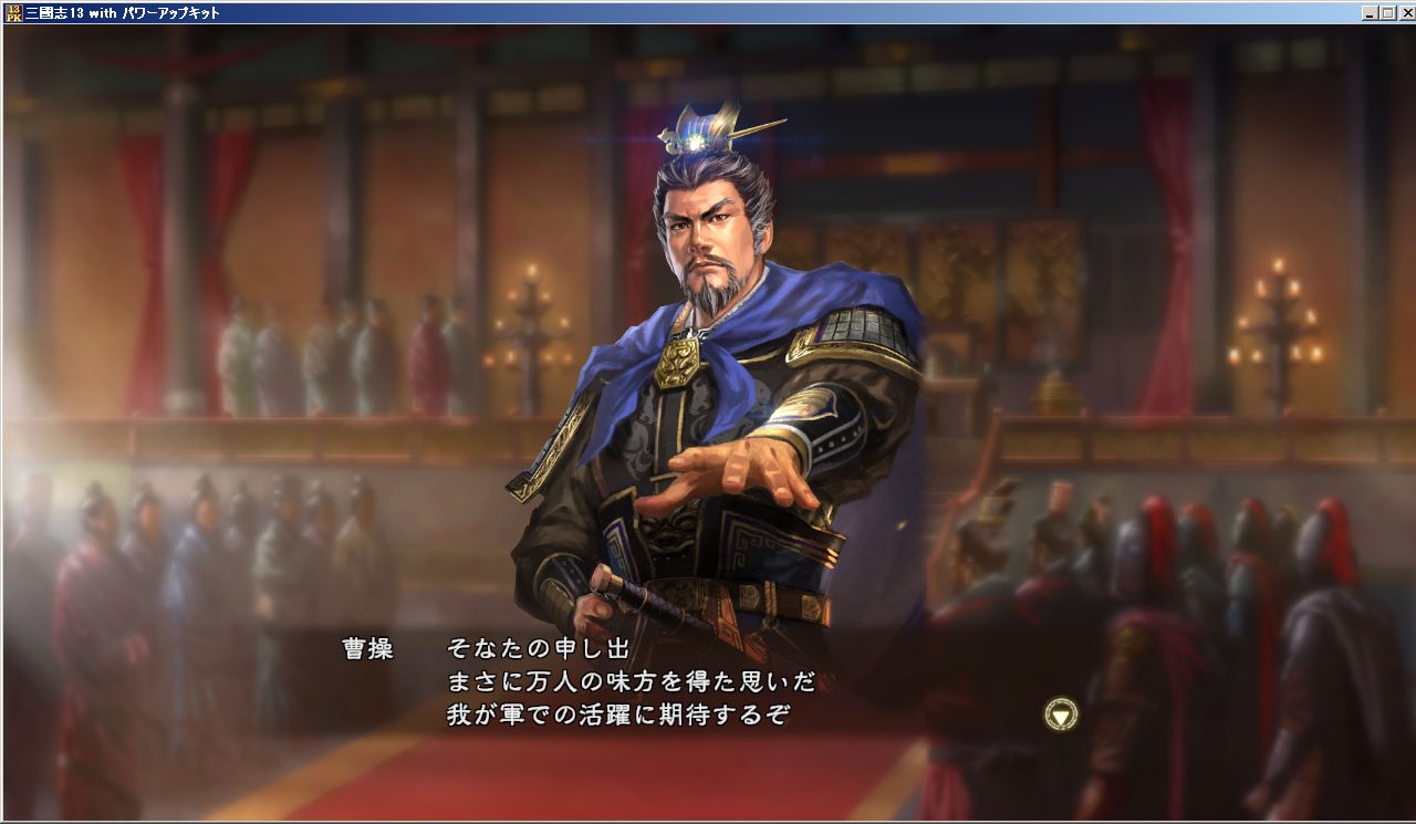 こっからは武将の引き抜きのための下ごしらえの始まり。人心操作のための祝宴を催し、とにかく曹操軍の優れた武将を片っ端から畏敬状態にして絆を結びまくった