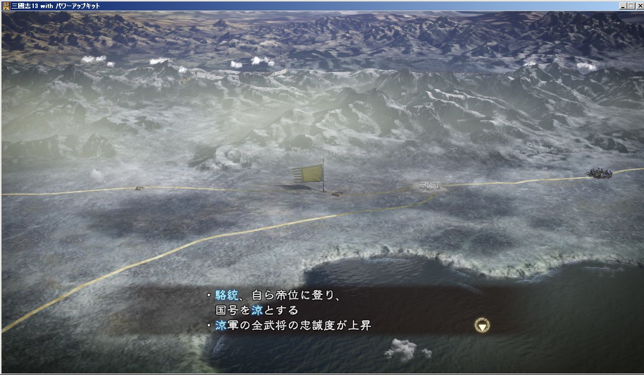 蜀の息の根を止める寸前で、一息ついて威名をコンプリートしとこうと思い、一度軍を解散させて、いそいそと条件達成に勤しんだ。・・・でもこれが良くなかったんだよな~・・後から思うと。一応、その間に友軍が蜀を滅ぼしたんだけどね。