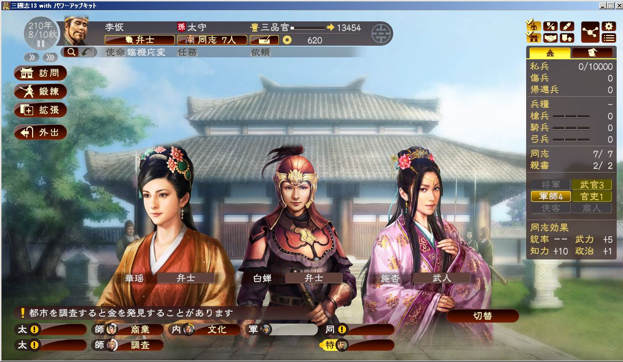 同士ができれば嫁作るのも早い。今回の嫁は皆、新しいビジュアルだったので、嬉しかった。同志も7人揃ったぞ~。軍師威名の中に、達成条件として同志候補50人以上とかゆー威名があったから、彼らにはせいぜい親書を交わしまくって貰おう