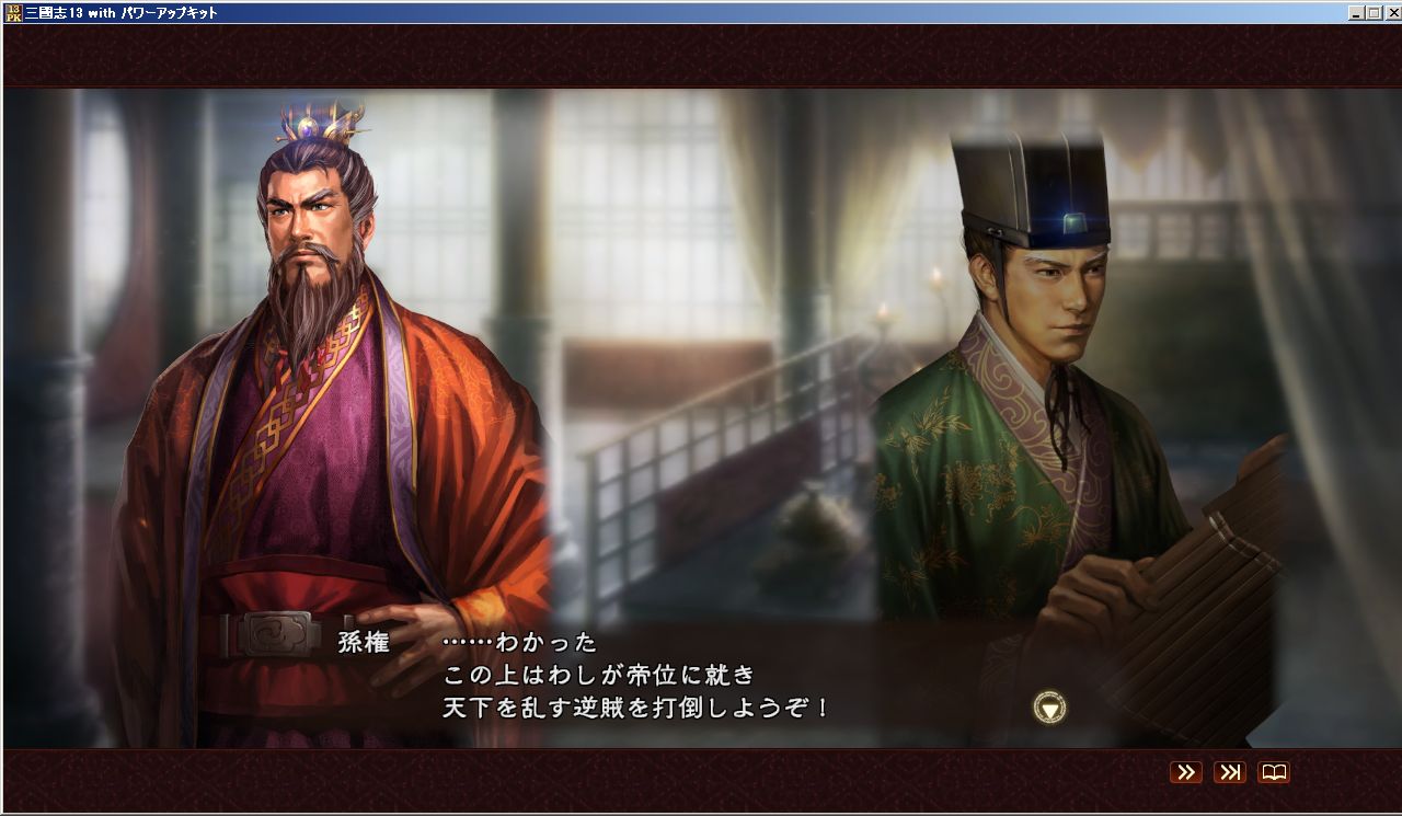 案の定、戦が楽になり、李恢軍はもう何年も遠征に出続けているのに、兵を一向に減らさず(むしろ増やして)、魏軍を追い詰めている。とうとう孫権は皇帝になり、国は呉となった。だが時既に遅し