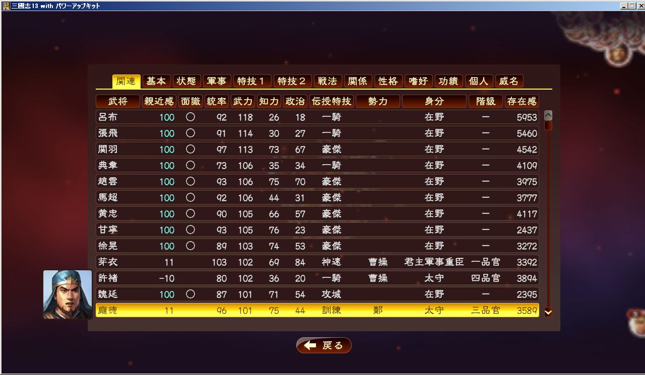 ・・ああ、一応自分自身で勢力を滅ぼしたり(許褚勢力滅ぼして、彼にものごっつ嫌われてしも~た)、畏怖されたり(袁尚になんども国を譲るって言われた)ってところが違うなあ。