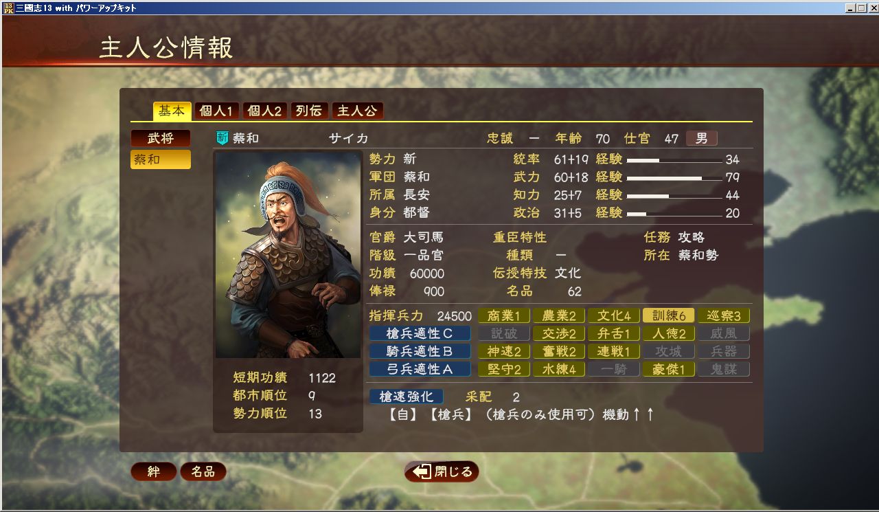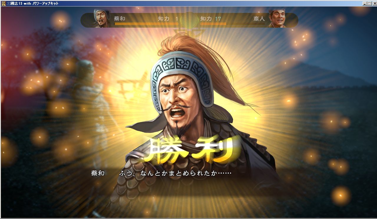 ぶっちゃけ、ここらで少々焦り始めた。許褚の時みたいに、ちんたらプレイをやってたら、そのうち蔡和も寿命で死んじゃうんじゃないかってemoji