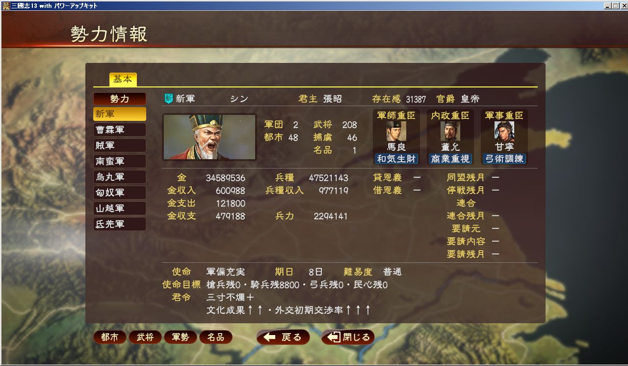 ここで我らが「新」と曹家軍の国力を比較しとこう!
