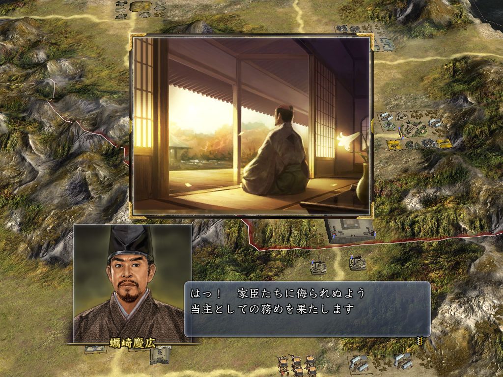 慶広は亡き父に誓いを立てた。「・・父上の志はこの慶広が継ぎます。家臣の意見によく耳を傾け、日の本に平安をもたらしましょう。裏切り裏切られることが当たり前の戦国の世を一刻も早く終わらせまする。その為にはこの慶広、時には鬼にも蛇にもなりましょうぞ。」