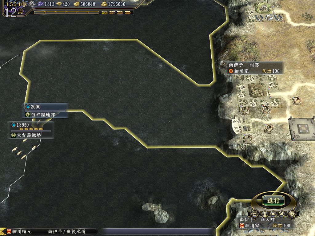 四国地方においては、黒瀬城に大友家が大挙して進攻してきているが、宇和島港周辺に配された鉄砲砦の数々を落とすことはおそらく不可能であろう。黒瀬城の守将を務める杉隆滋は、主力を一兵たりとも派遣する必要はないと考えていた。