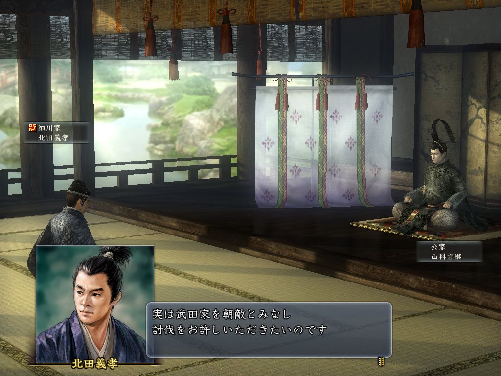 その頃、北田義孝の朝廷工作により、武田家が朝敵とされることになった。それにより武田晴信を盟主とする細川包囲網は瓦解し、武田家と誼を通じていた各国が同盟関係を相次いで打ち切るという事態になった。早くも武田家支配集落の民からも嫌煙ムードが漂っているとのことだった。