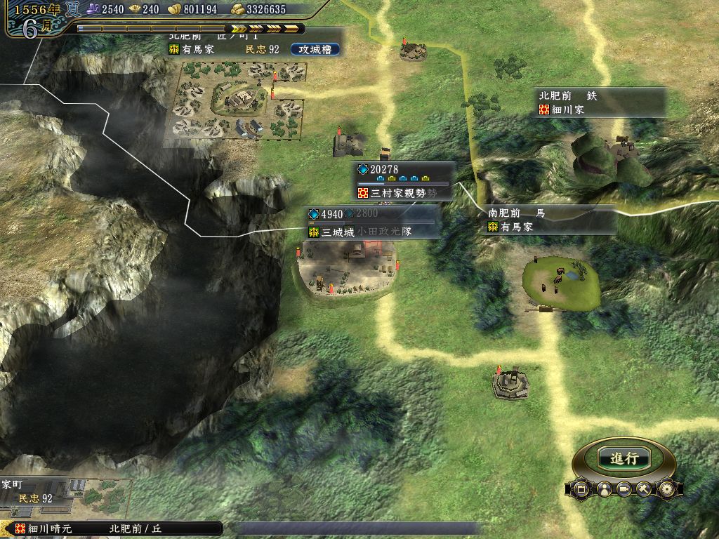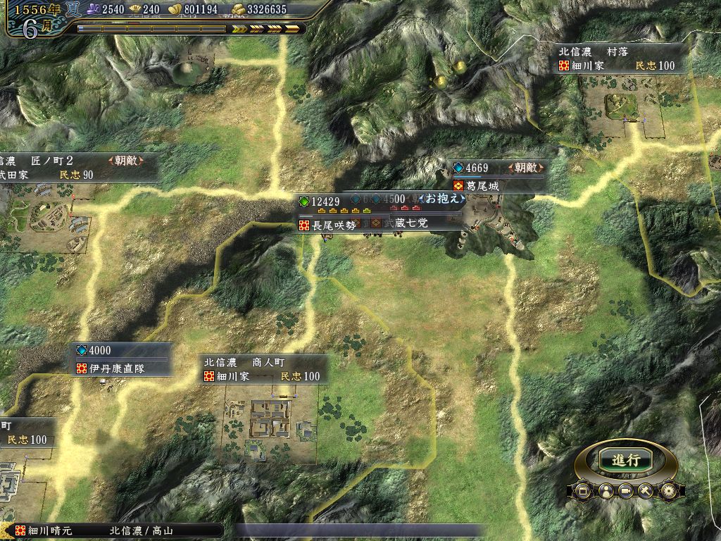 遠江の引馬城は、武田との攻城戦の傷跡が未だに残っていた。堀は破壊され、裸城となってしまっている為、篭城戦は不可能といえる。迎撃に出た兵も晴雅の用兵の前にあえなく壊滅の憂き目を見た。さすがに岡崎城では松平家の四天王がそれぞれ奮戦し、細川方と互角の戦いを演じていた。このまま投入した兵だけで三河攻防戦に挑むか、清洲城に武将を派遣して援兵を出させるか、はたまた高遠城から竜之介に長躯遠征させるか、引き馬城攻略後の晴雅に連戦をさせるか・・・晴元としては思案のしどころであった。