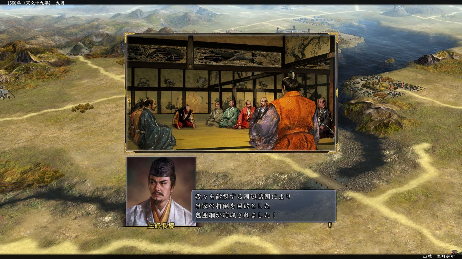 北畠家、赤松家、浦上家、河野家、長宗我部家が一斉に細川領内への進攻を始めた。だが細川家の主力軍は現在、六角家の拠点・観音寺城へ攻めている最中である。一刻の沈黙の後、晴元は彼らに攻城戦を継続させることにした。代わって、領内の城主たちに「各個目の前の敵に全力で当たり、持ち場を死守せよ。」との指示を下した。