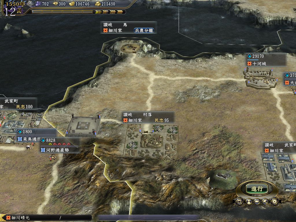 十河城の西には当主・河野通直自ら率いる河野勢が砦の攻略にかかっているが、お世辞にも戦上手とは言えず、細川家の兵と一戦交える前から、行軍中に随分と兵を減らしているようである。兵力は一万足らずであり、砦を落とすまでにまださらに兵を消耗することだろう。