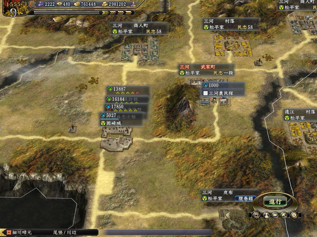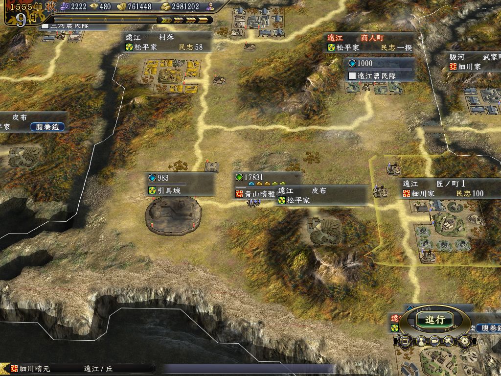 遠江の引馬城は、武田との攻城戦の傷跡が未だに残っていた。堀は破壊され、裸城となってしまっている為、篭城戦は不可能といえる。迎撃に出た兵も晴雅の用兵の前にあえなく壊滅の憂き目を見た。さすがに岡崎城では松平家の四天王がそれぞれ奮戦し、細川方と互角の戦いを演じていた。このまま投入した兵だけで三河攻防戦に挑むか、清洲城に武将を派遣して援兵を出させるか、はたまた高遠城から竜之介に長躯遠征させるか、引き馬城攻略後の晴雅に連戦をさせるか・・・晴元としては思案のしどころであった。